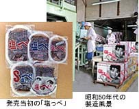 昭和26年には海苔の佃煮(アラ!の前身)製造開始。昭和36年には、ブンセン昆布(旭)が農林大臣賞を受賞、同年「塩っぺ」も発売。40年代には「塩っぺ」ブームがおこりました。細切り塩ふき昆布といえば「塩っぺ」、「塩っぺ」といえばブンセンと言われるようになりました。