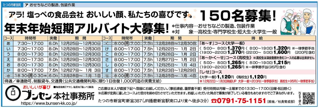| 時 給: | 8:00~17:00…1,120円 | |||